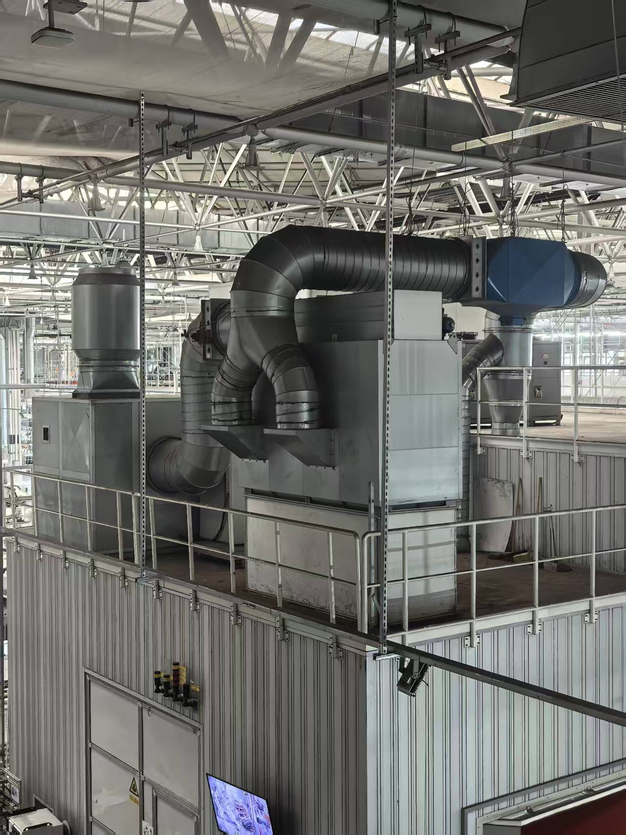 長春一汽紅旗工廠除塵器改造 設計風量:10000m3/h 電壓:380V AC 管道:無花鍍鋅板 排放標準:<10mg/m3